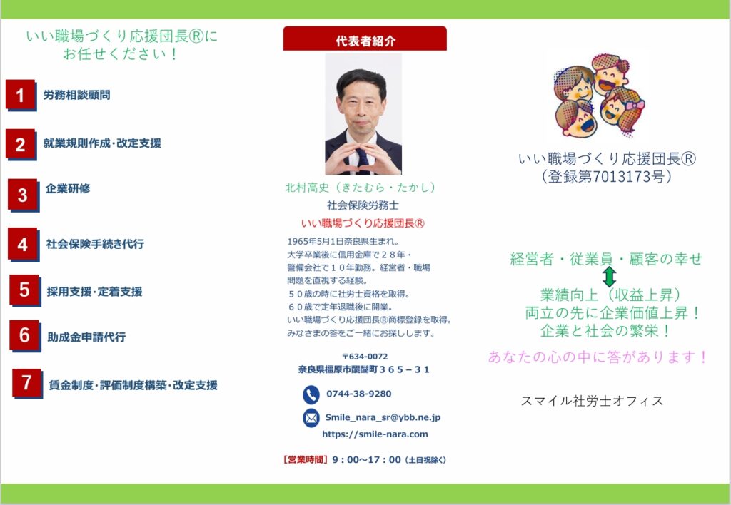 いい職場づくり応援団長Ⓡ(登録第7013173号)の商標登録取得に伴い、志を新たにするため事務所パンフレットを更新いたしました。今後ともどうぞよろしくお願いいたします。